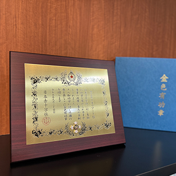 これまでの弊社の寄付への取り組みが認められ、この度、日本赤十字社から昨年の銀色より高位の「金色有功章」を拝受いたしました。弊社は、今後も芸術の力で社会に貢献し、より良い未来を創造してまいります。