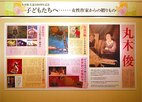 本年は、洋画家・丸木俊氏の生誕100周年にあたります。作品を通して原爆の恐ろしさと平和の尊さを世界に伝えたことで広く知られる俊氏。その一方で、子供の幸せを願い一生涯を通じて手がけてきた「絵本」にスポットを当て、古今東西の女性絵本作家の活躍や書籍とともにご紹介しました。
