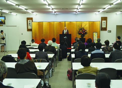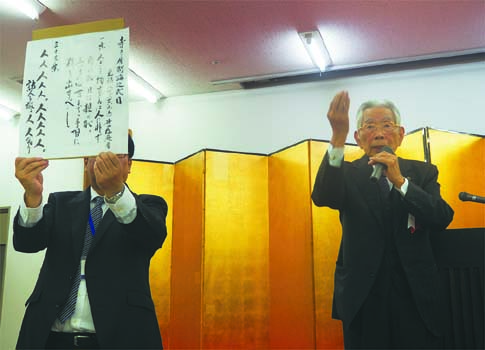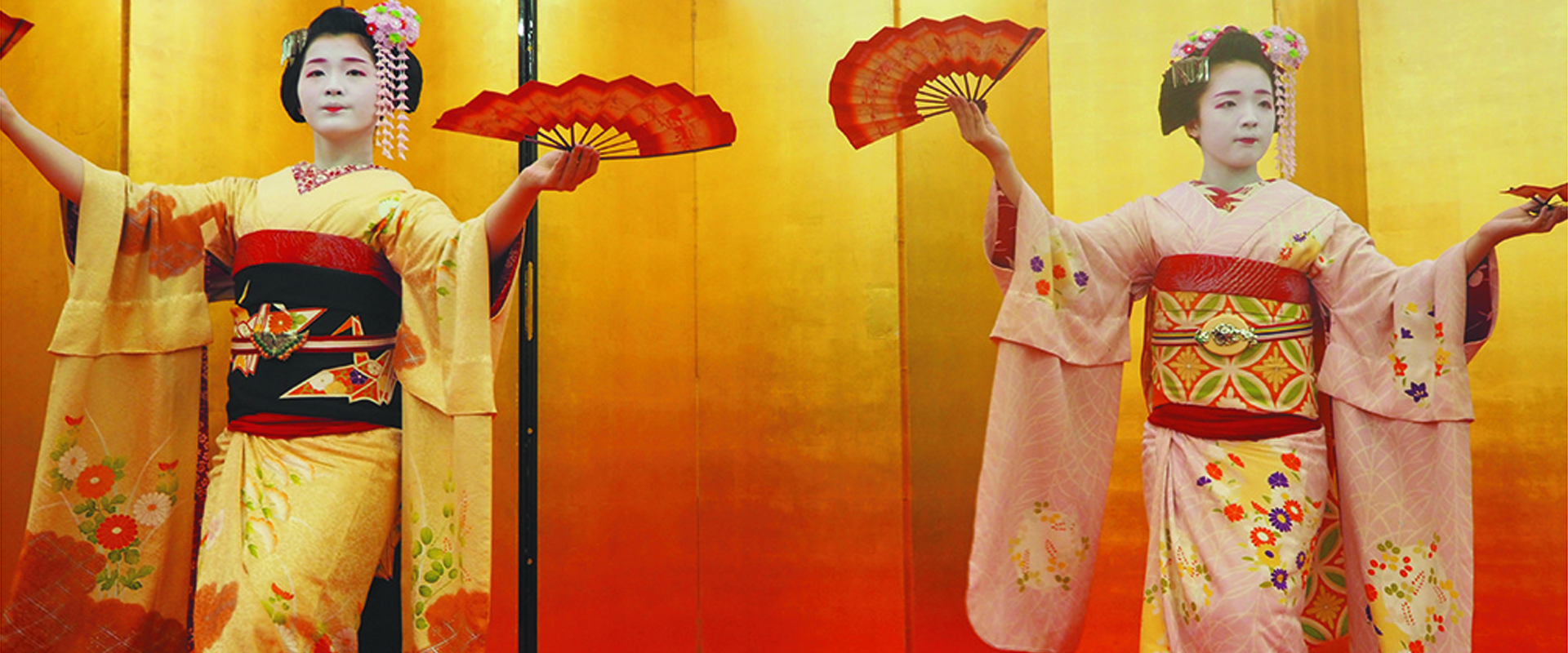 特別展示では、「伝統と革新を担った戦後の書家たち」と題し、戦後の小学校教育から書道を守った伝統書家や、書を芸術の域まで高めた書家たちを紹介。本展では、豊道春海や上田桑鳩の書や、未来をつなぐ書家として京都府立莵道高校の生徒作品も展示しました。レセプションでは清水寺の森清範貫主が「四有」についての説法を、本展名誉顧問の加藤達成先生は「書道教育」について講演。特別プログラムでは東山区の伝統ある花街宮川町「河よ志」の舞妓さんに「紅葉の橋」ほかを披露していただきました。