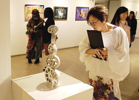 本展は一般のご来場者によるアンケート形式での審査と、元・世田谷美術館の副館長であり美術評論家として多数の著作で知られる勅使河原純氏、誰もがアートを身近に楽しめる社会にと全国で様々な活動を行なう一般社団法人アートのある暮らし協会代表理事・枝澤佳世氏、ロンドン大学アジア・アフリカ研究所(SOAS)教授のタイモン・スクリーチ氏ら特別審査員3 名の審査によって各賞の選定を実施。それぞれが多岐にわたるジャンルの作品の魅力を感じ取ろうと、一点一点、すべての出展作品を観覧し、厳正に審査いただきました。会期中には本展の告知と出展作品を掲載した『横浜ウォーカー』誌の編集長である山本篤史氏も来場され、飛び入りで審査にご参加いただきました。