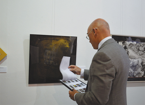 コンペティション形式で2名の審査員による審査と、一般のご来場者によるアンケートの総評により、各アワードを選出する本展。会期中には、審査員であるロンドン大学アジア・アフリカ研究所教授(日本近世文化・美術専攻)のタイモン・スクリーチ氏とキュレーターでアートライターでもあるニコラス・アッシャーウッド氏にも来場いただき、すべての作品をじっくりと鑑賞しながら審査を行なっていただきました。また英国王立美術家協会(RBA)副会長のミック・デイビス氏も来賓として同席。「日本独自の文化を美術作品として表現しているものが多く興味深かった」「高い表現力や技術力に感動した」などそれぞれ高い評価をいただきました。