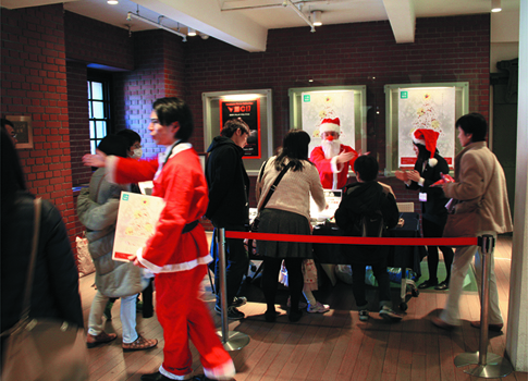 会期中、ドイツの建築様式の一部を取り入れた横浜赤レンガ倉庫では、冬のシーズンにフランクフルトで始まったと言われているクリスマスマーケットを開催。商業施設を訪れた人々にも多数来場いただき、アートとの思いがけない出会いに顔を輝かせていました。