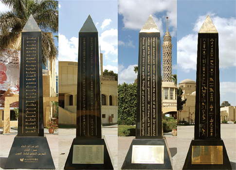 古代エジプトではファラオにのみ建立が許され、ファラオの権威や神への誓いが記されたオベリスク。本展では、このたびの日本とエジプトの交流、また革命によって新しい時代が開ける記念碑として、高さ5mのオベリスクに「人類共通の願い」を刻み美術館前に建立。今後、日本とエジプトとの交流の要として、美術館を要する「オペラハウス」敷地内に移動され、半永久的に設置されることとなりました。