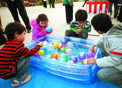 また、特別イベントとして美術館前で行なわれた「納涼フレンドシップ」では、日本の納涼を代表する夏祭り体験も実施。ハッピと鉢巻きを身にまとったカイロ大学の学生が子供たちに優しく輪投げや風船すくいを教え、日本のおもちゃの景品に、大人も子供も夢中になっていました。