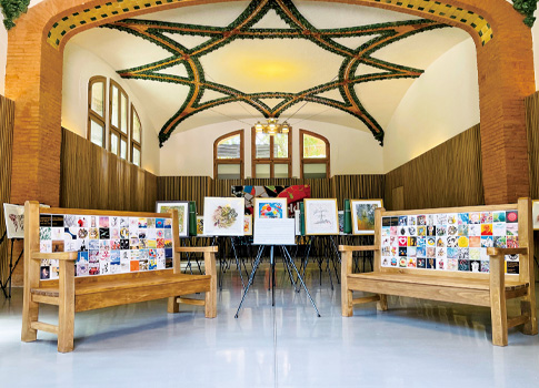 世界で最も美しい病院として1997年にユネスコの世界文化遺産に登録されたサン・パウ病院。スペインの建築家リュイス・ドメネク・イ・ムンタネールによって建設され、モデルニスモの芸術様式を取り入れた院内は、モザイクやステンドグラスを多用した豪華絢爛な内装の一方、建物を地下通路で繋ぐなど機能面でも優れていました。そんな世界文化遺産であるサン・パウ病院内にて、ドメネクの言葉、「芸術には人を癒やす力がある」をテーマとして掲げたチャリティー版画展「One World -Japanese Art Charity Exhibition in BARCELONA-」を、6月17日(金)から6月20日(月)の期間で開催しました。