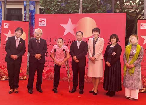 会期初日にはベトナム国立美術博物館にて開催記念セレモニーを実施。日本からのアーティストを始め、ご来賓として同館館長のグエン・アイン・ミン氏、在ベトナム日本国大使館より一等書記官の神谷直子氏、ベトナム戦争の被害者で「ベトちゃん、ドクちゃん」で知られているグエン・ドク氏、そして国際平和美術会名誉顧問の木曽功氏と多くの方にお越しいただきました。