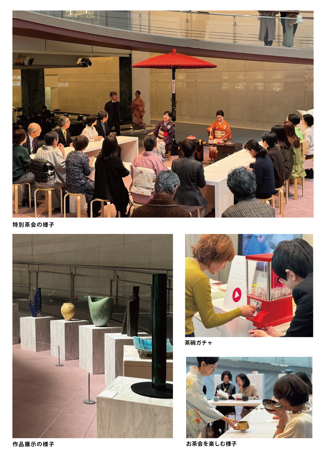 展示会場では、公益社団法⼈美濃陶芸協会会⻑ 安藤 ⼯⽒、副会⻑ 阪⼝浩史⽒、加藤三英氏によるギャラリートーク、出展作家の茶碗を使っての特別茶会が賑やかに行なわれました。